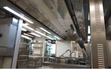 在公共场所,如酒店、大饭店等都需要做厨房烟罩通风系统,主要是使厨房排烟顺畅,炉灶一线是高温作业,在生产时会产生大量的油烟水蒸气和其他气味,因此需要可靠性高、高风量散热风扇进行散热与换气,因为如果排烟不畅的话会另工作人员引起不适,所谓散热风扇是此必不可缺之一。