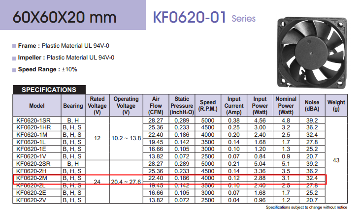 这款轴流风机采用双滚珠轴承,尺寸60x60x20DC24V4000rpm,噪音低至32.4dB,在40℃的环境下可连续运行80000H