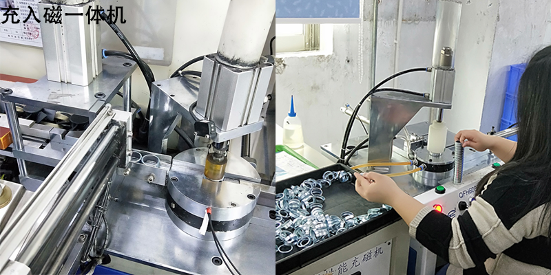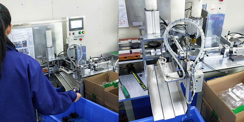 散热风扇胶磁成形后接口要平整才能进行入磁工序,每一款机种的散热风扇都有对应规格的胶磁,其长度,宽度与厚度均不一致,并将磁条平整放入磁条料槽,放下档磁条隔板,再将磁框加至振动盘1/3位置。