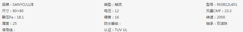 散热风扇的功能特点可分为高风量,长寿命,防水风扇,高静压,低耗电,低噪音风扇等,我们可以根据设备的需求来采购散热风扇对应功能特点,那么低噪音散热风扇就是我们今天讨论的山洋超静音散热风机。San Ace山洋风扇是出名了得低噪音。如下图所示为山洋静音风扇的参数。