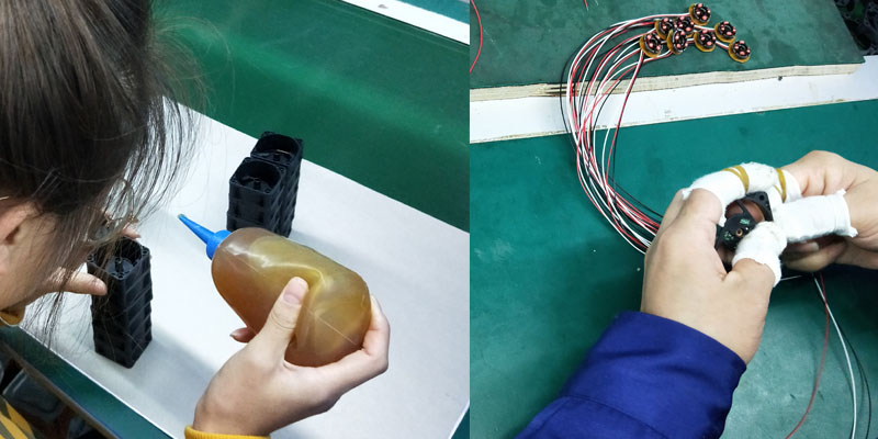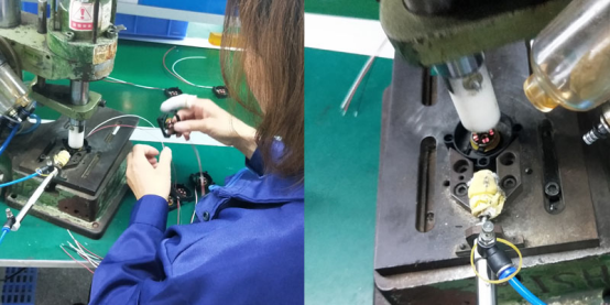 2、定子电源线出线方向与外框配合并将电源线扣平入卡线槽