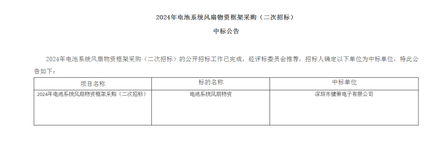 二、中标项目:中国南方电网2024年电池系统风扇物资框架采购项目