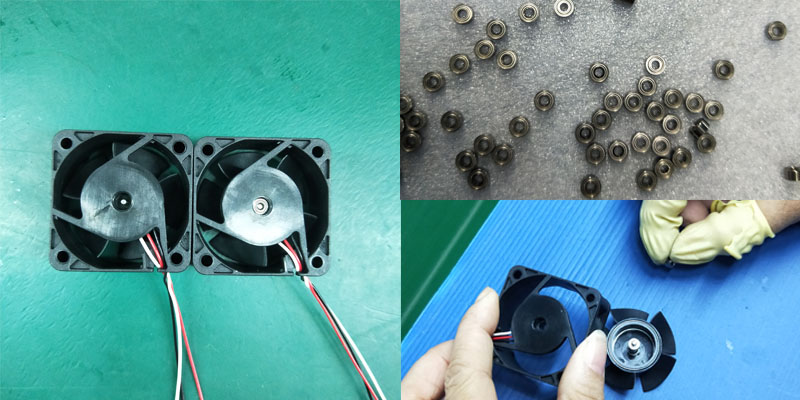 轴承起支撑或支持导向作用,固定转子轴芯为圆心,让转子在定子外圈作圆周运动;如轴承偏高,与转子底部摩擦力增大,影响风扇寿命,同时使转子磁场与HALL感应IC间距离增大,影响IC对磁场之检测判断力,使风扇产生定点。