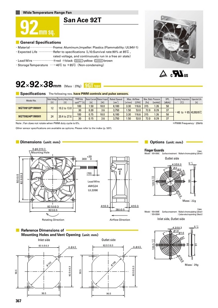 SanAce92TL山洋散热风扇9238直流风机DC12V宽温风扇9GT0824P1M001