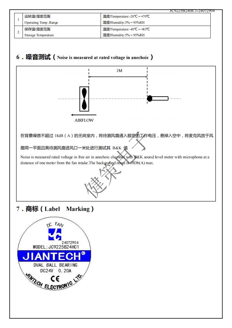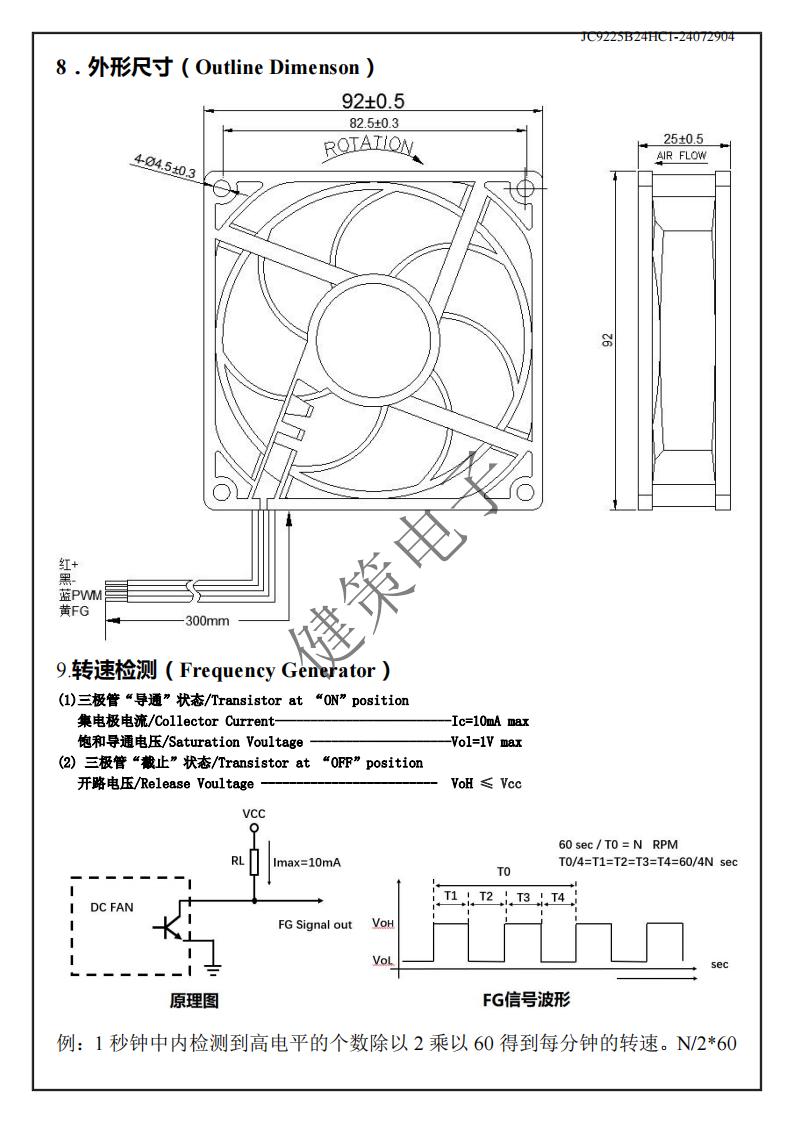 健策DC轴流风扇JC9225B24HC1-24072904产品详情说明: