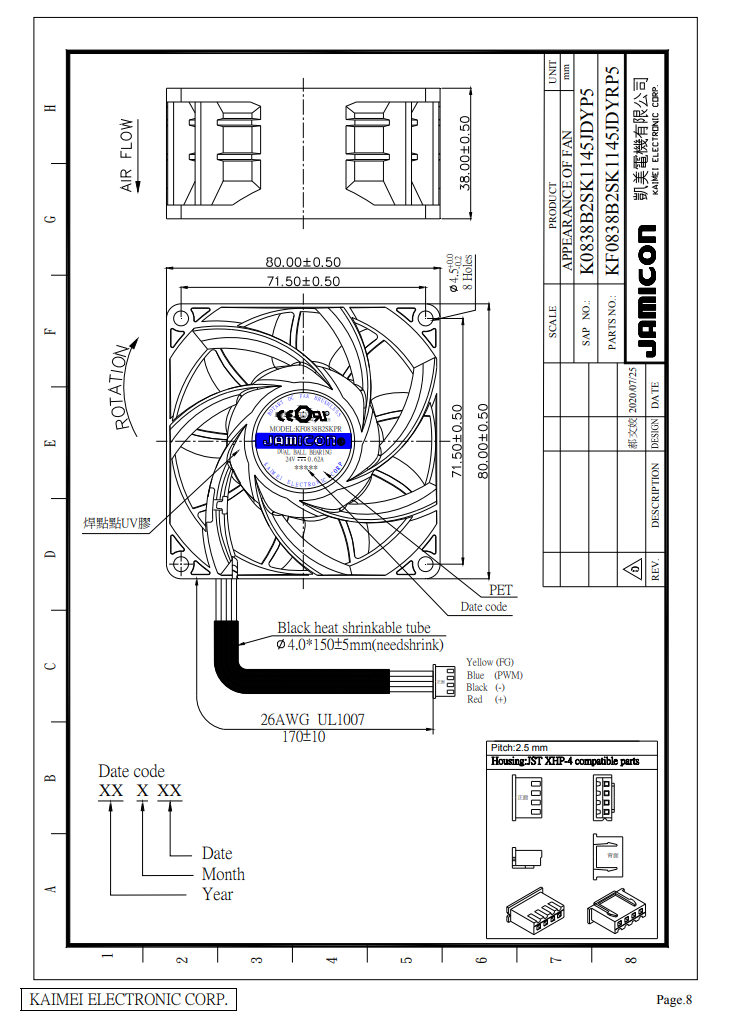 jamicon凯美轴流风扇KF0838B2SK1145JDYRP5产品详情说明: