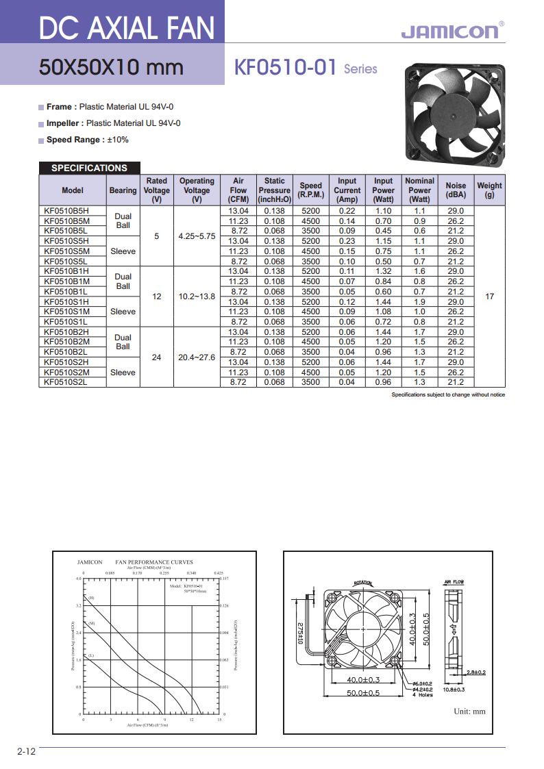 jamicon凯美散热风扇5010直流风机DC24V散热风扇KF0510B2M