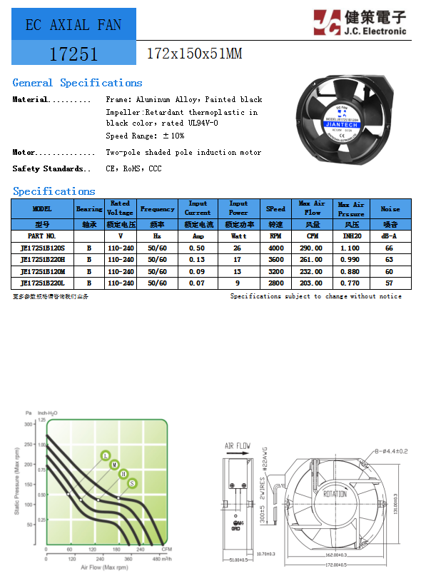 健策JE17251B120H散热风扇EC17251直流风扇