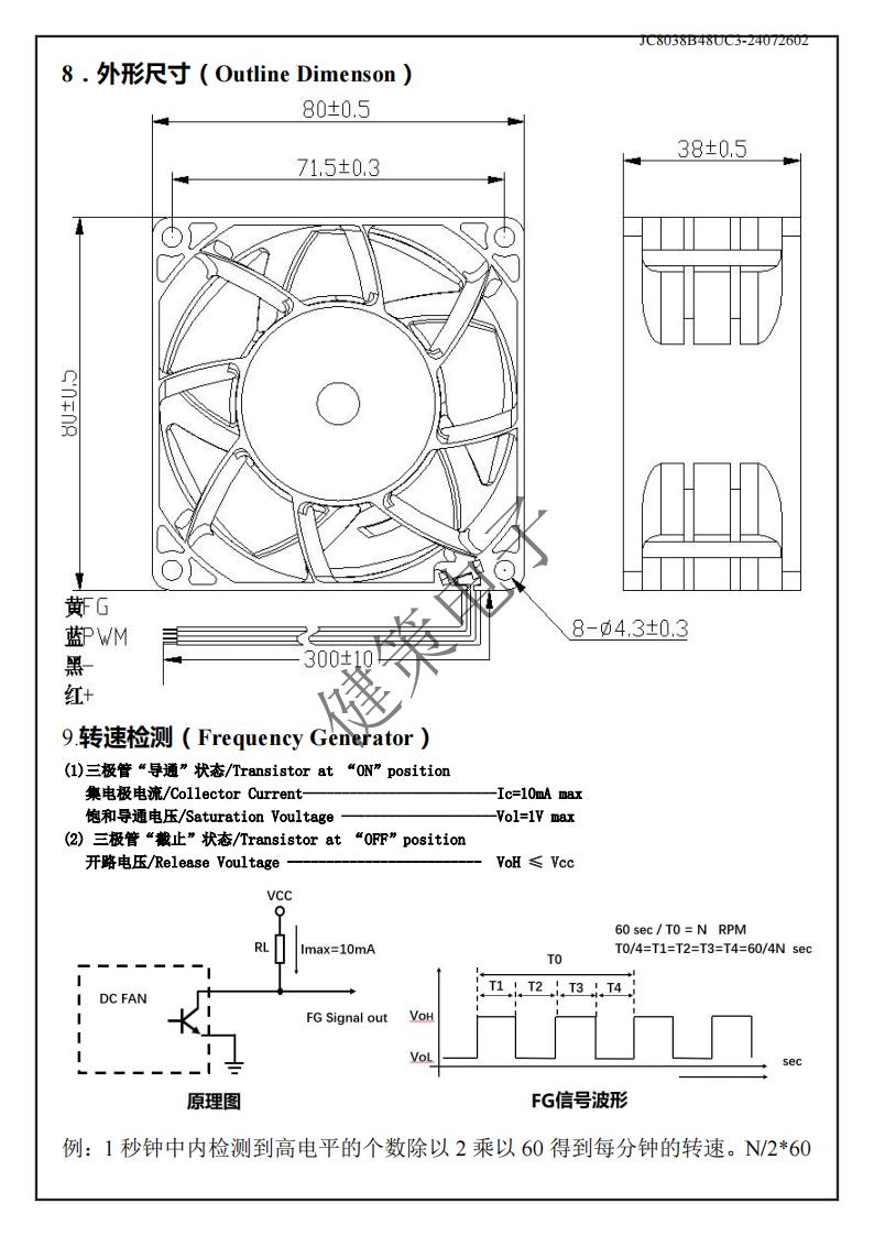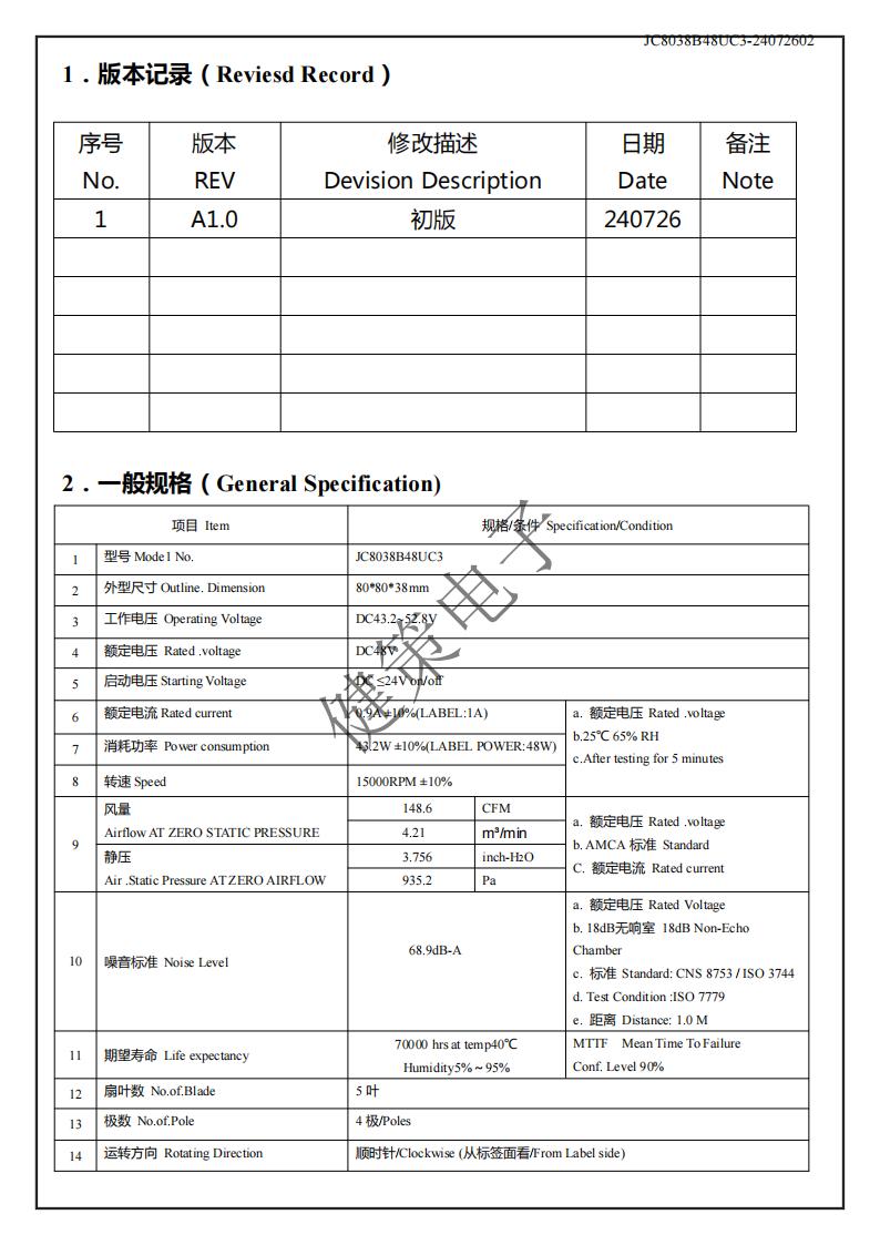 健策DC轴流风扇JC8038B48UC3-24072602产品详情说明: