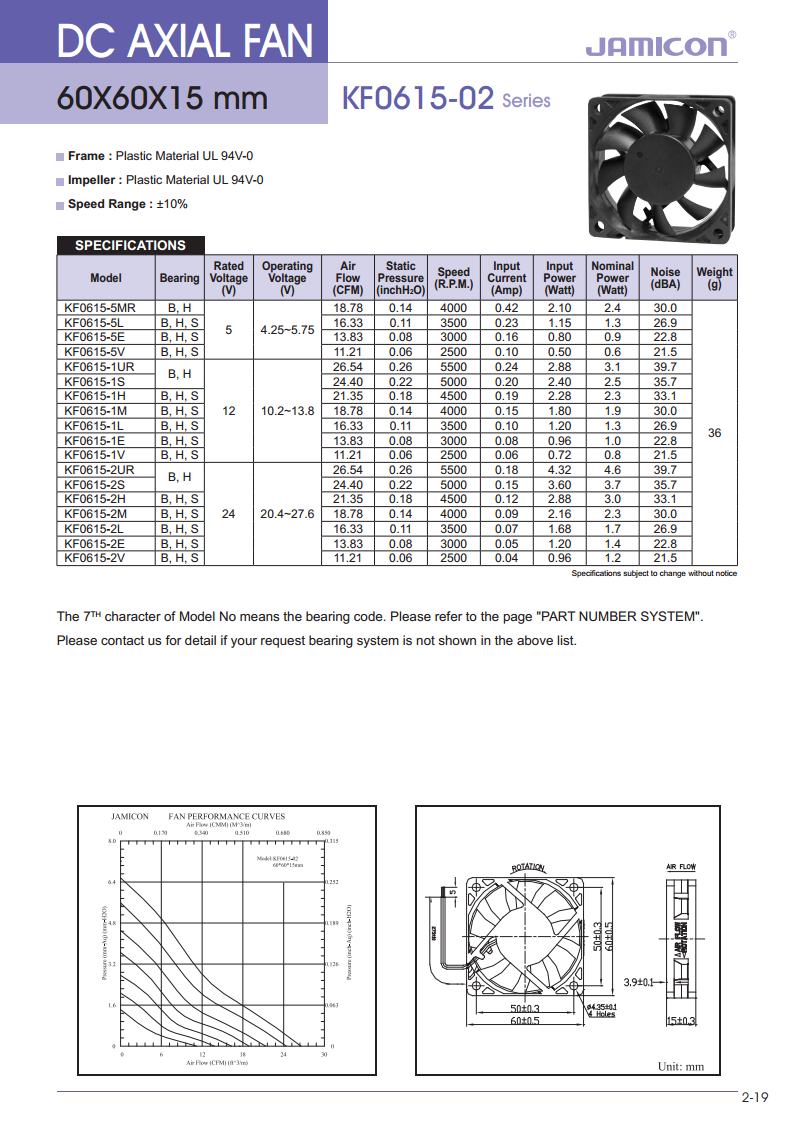 “健策电子”中国区域总代理台湾JAMICON凯美散热风扇,已成为JAMICON凯美最大代理商,JF0615-00 此款风机尺寸:60*60*15mm运转电压分:5V、12V、24V温度范围:-20-+60度和-20-+70度 寿命均达到50000H以上,可定制轴承系统、功能信号(FG测速信号、RD报警信号、pwm调速信号、温控信号、防水功能)
