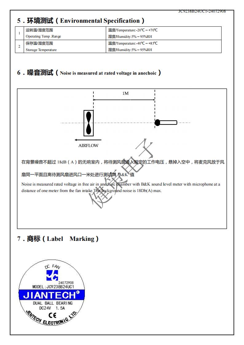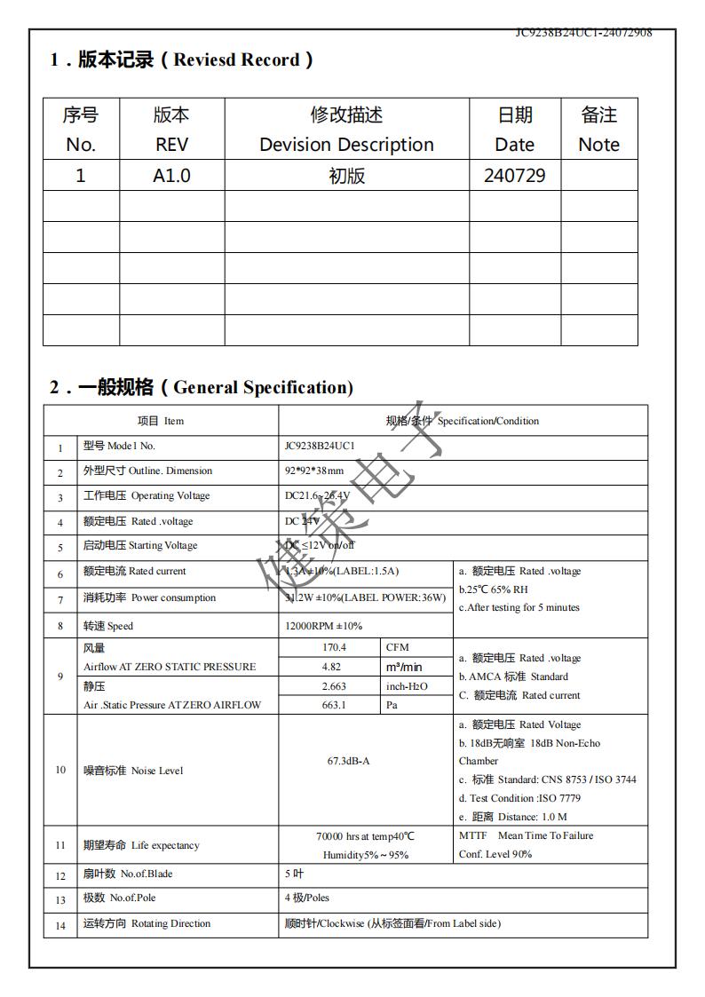 健策DC轴流风扇JC9238B24UC1-24072908产品详情说明: