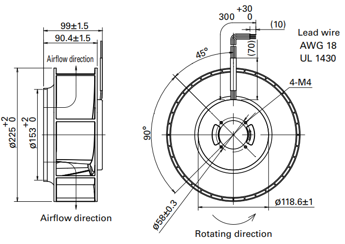 山洋离心风机9W2TS48P0S001产品尺寸图: