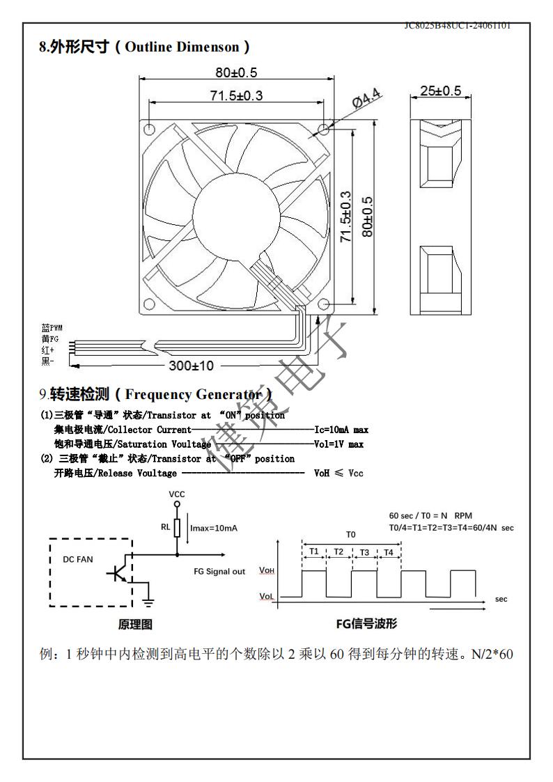 健策DC轴流风扇JC8025B48UC1-24061101产品详情说明: