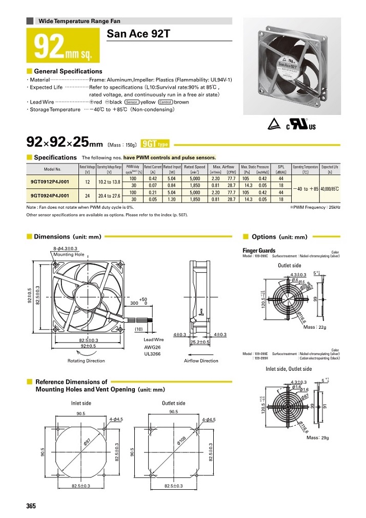 “健策电子”中国区总代理 San Ace三洋散热风扇,此款风扇尺寸:92*92*25mm 有运转电压:12V,24寿命均达40000H,温度范围:-40-+85度。