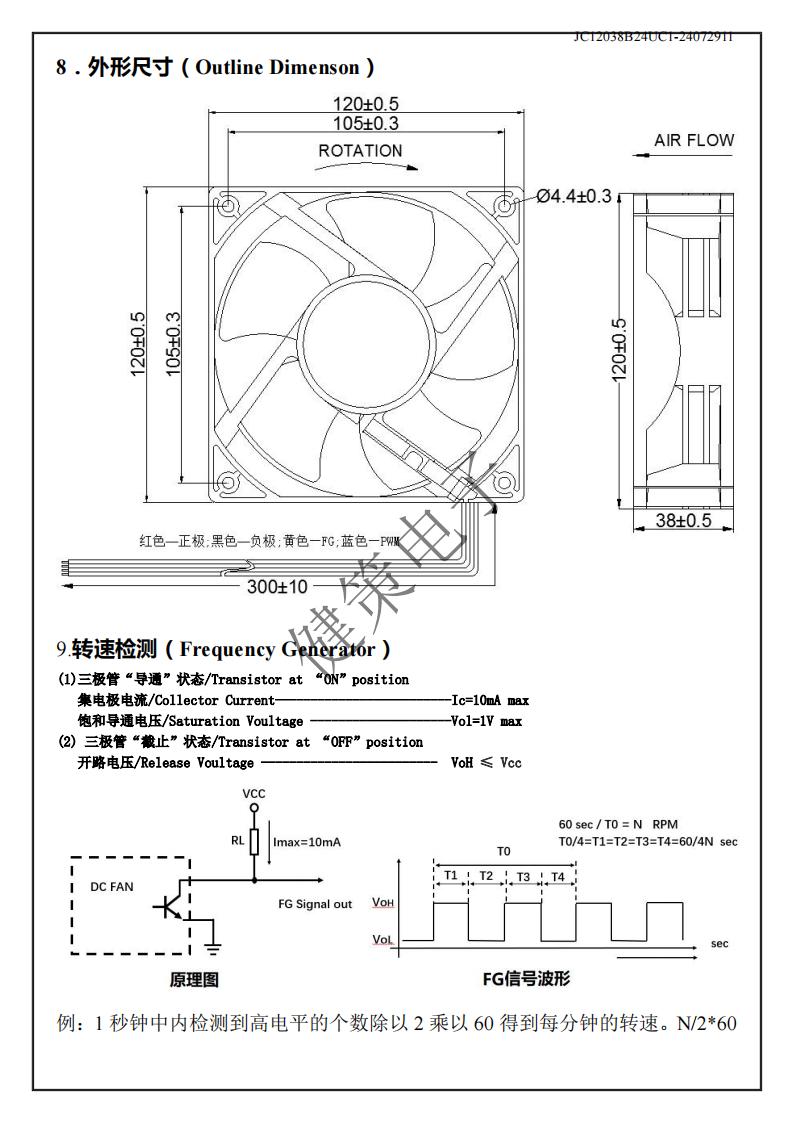 健策DC轴流风扇JC12038B24UC1-24072911产品详情说明: