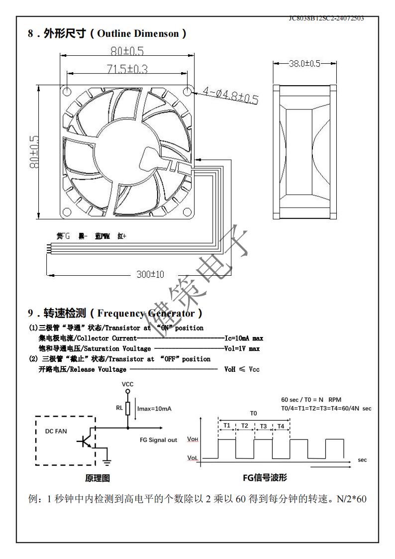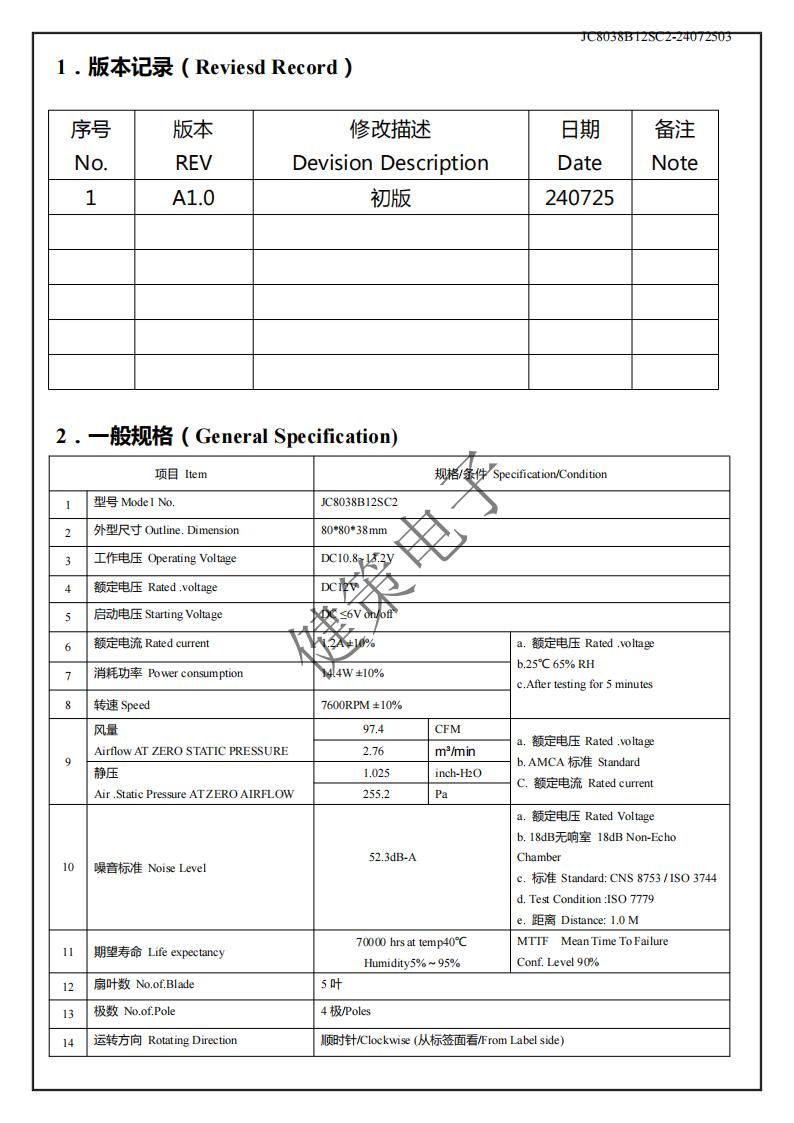 健策DC轴流风扇JC8038B12SC2-24072303产品详情说明: