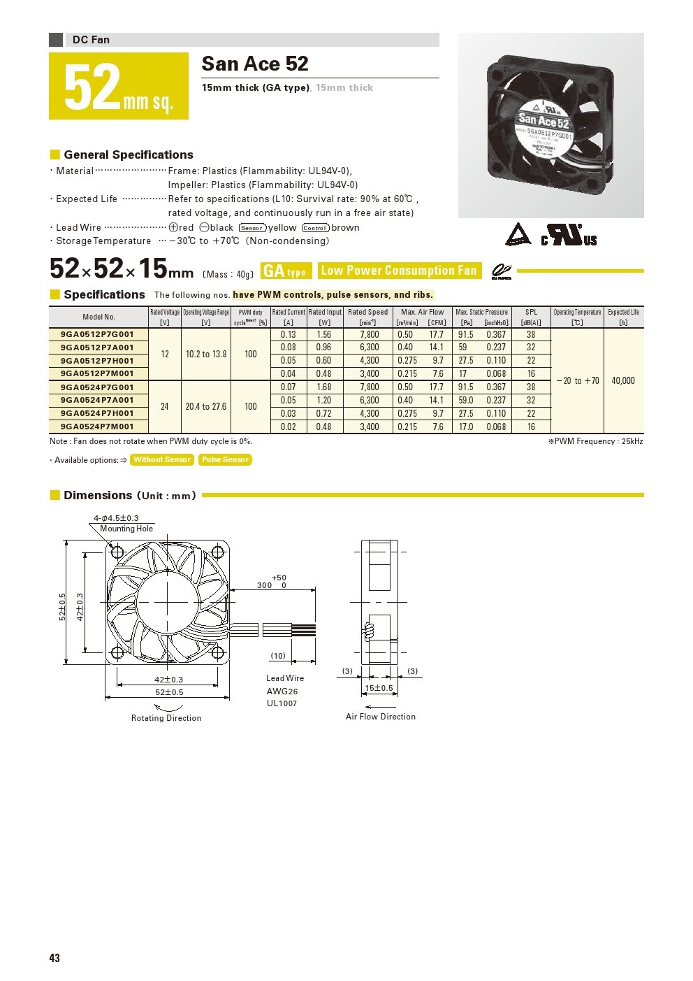 日本山洋9GA0512P7A001直流低功耗散热风扇,是一款DC直流低功耗风扇,尺寸为52*52*15mm,可选择PWM调速功能和FG测速信号、RD报警信号、停转自启动信号。这款DC轴流风机采用的是塑料制外框加上塑料叶轮,散热效果俱佳,广泛适用于交换机、服务器等的行业设备。
