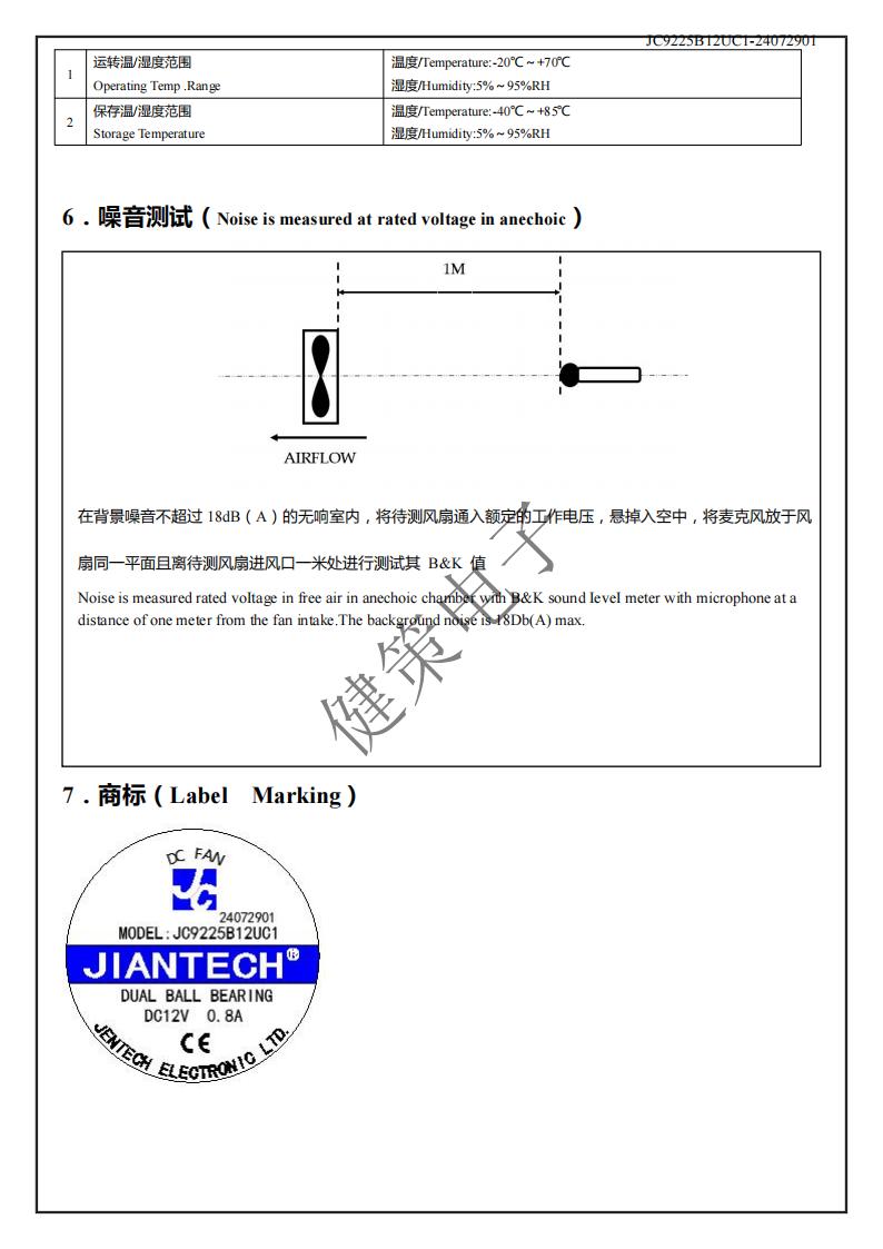 健策DC轴流风扇JC9225B12UC1-24072901产品详情说明: