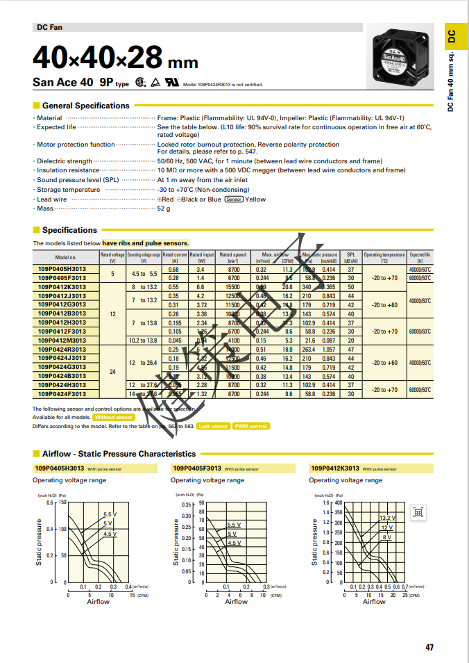SanAce山洋轴流风扇109P0424H3013产品详情说明: