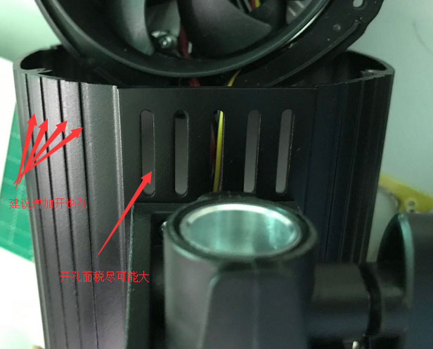 客户是一家走在摄影器材前沿的一家公司,之前公司60W摄像机中散热风扇采用YY9225M12B对其发热源LED光源进行散热,每个摄影机用1pcs9225散热风扇,现反馈出现噪音太大的现象,需要在满足散热的情况下做降噪方案,所以请我司研发总监黄工到现场测试并给出散热解决方案,如以下: