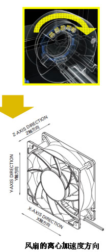 3、耐G力系列风机会固定轴承,采用比普通轴流风机更能对抗外力的构造,防止了风机滚珠轴承的损伤。