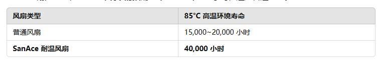 📢 结论:SanAce 耐温风扇在 +85°C 高温下仍能稳定运行,且寿命远超普通风扇。