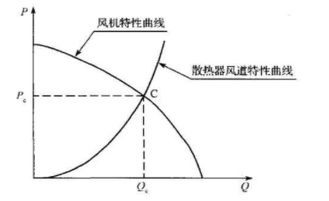 风机选型时主要参考的性能参数为P-Q曲线,即风阻与流量特性曲线(图1),其为风机在某一固定转速下工作时静压随风量变化的关系曲线。