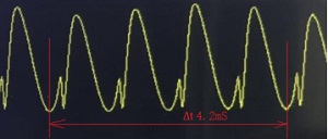 测试5谷值的∆t 时间为4.2mS,计算散热风扇在转速:转速=60/∆t。转速为60000mS/4.2mS=14285转。因此批量生产所用散热风扇可直接定制12V额定电压,标称转速14500RPM风扇。