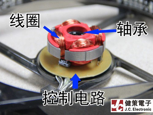 简单易懂的来说,散热风扇主要是由定子和转子两大部分组成,定子主要包括控制电路、轴承、线圈。转子则包括扇叶、磁铁和轴三个部分组成。