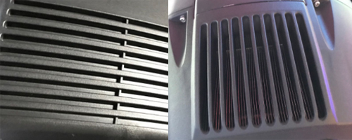 案例如:600W摇头灯散热风扇的应用,散热风扇采用的是健策JC9225B12H 9225风扇,直流风机DC12V,2500转,安装在下图第一张情况下,整机套上外壳后噪音大,散热风扇技术工程师分析:重点在进出风扇及风扇距离,经查外壳进出封口不仅改变风向,更关键是开孔过小,于是经过改良,摇头灯增大开孔后,整机噪音由原来62dB降低至55dB.