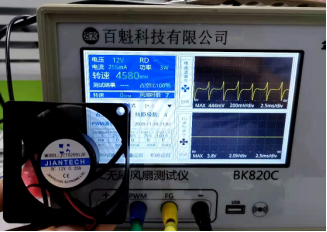 标准两条电源引线的风扇调速原理是通过控制风扇供电实现,风扇的启动电压到额定电压之前,电压大小与风扇转速成正比关系。我们用健策散热风扇做了一个两线电压调速测试。